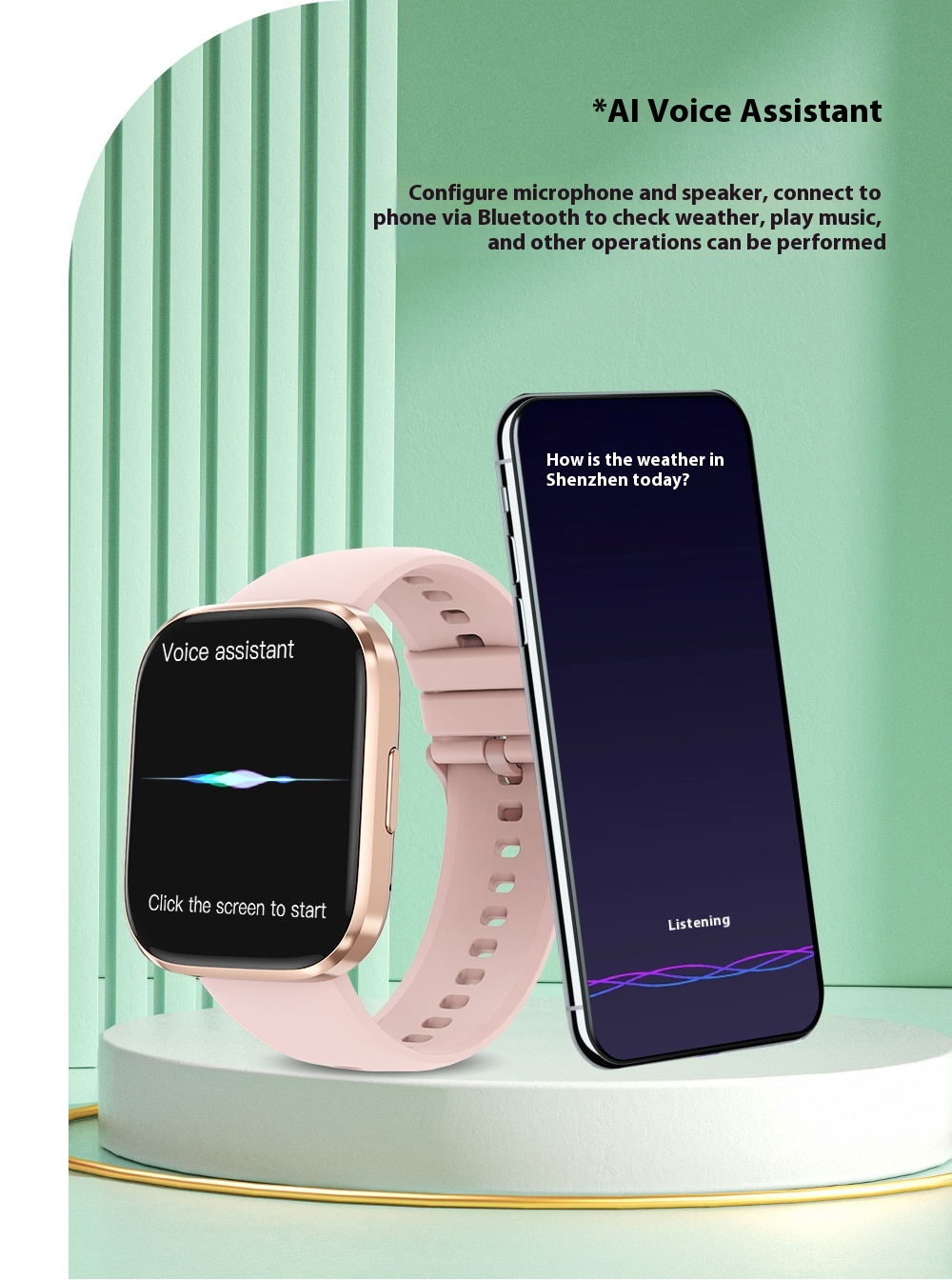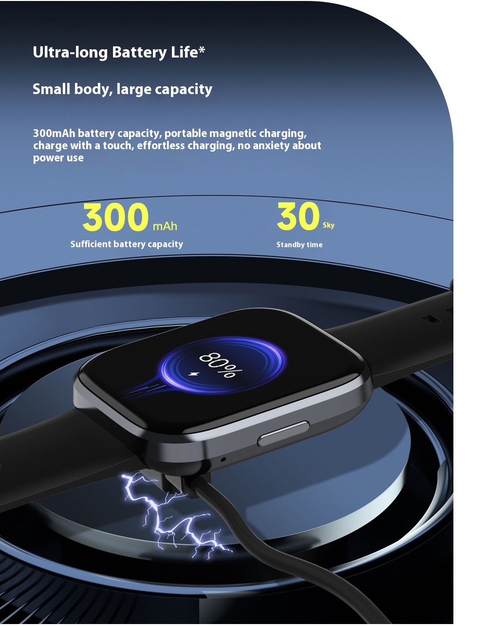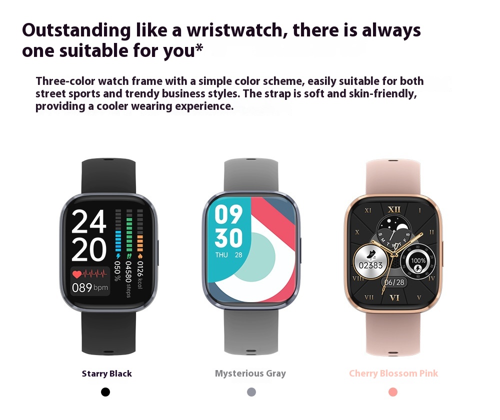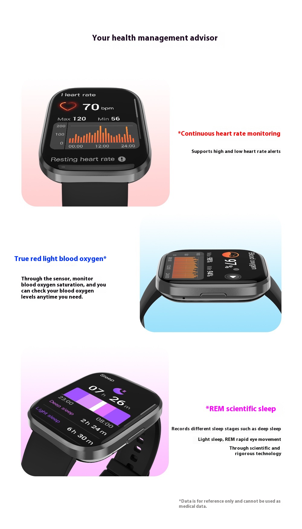 Functions: social entertainment, Bluetooth calling, smart reminder, remote control selfie, sleep monitoring, blood oxygen detection