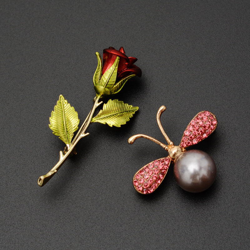 Brooch High-end Women Luxury Pearl Rhinestone Bee Rose Corsage Sweater Pin Ins Trendy Personality Accessories