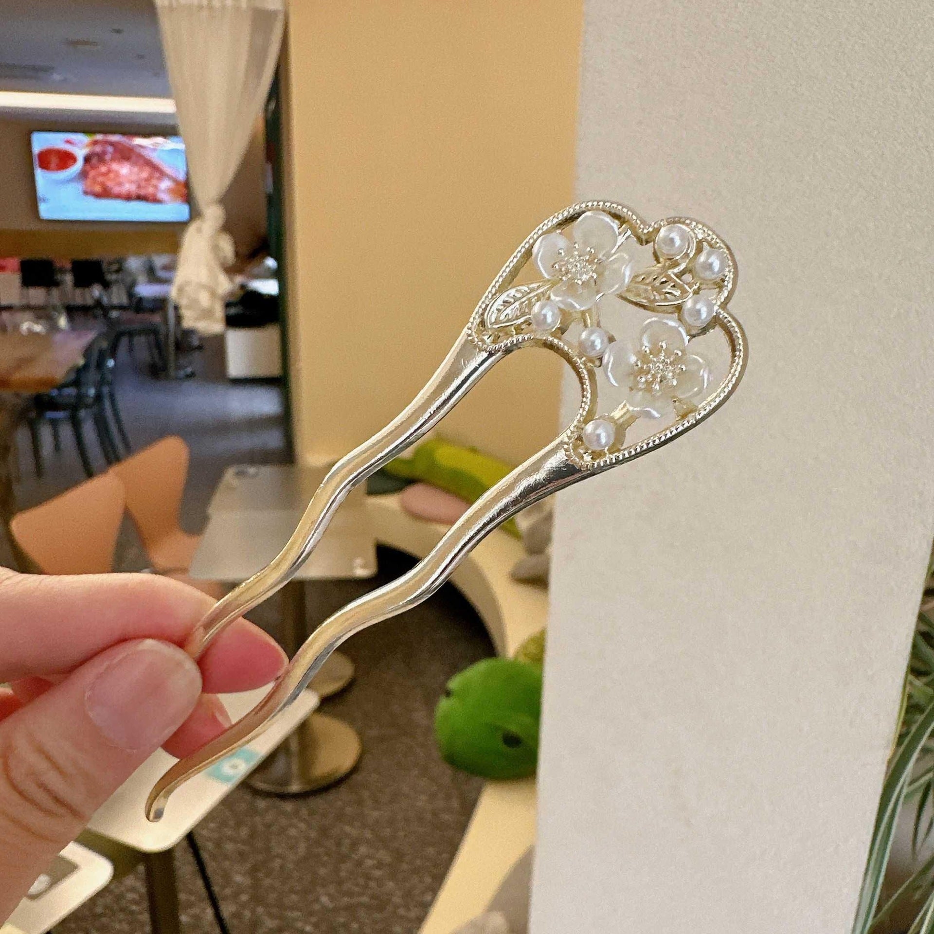 Elegant Beads Camellia Style U-shaped Hair Pin