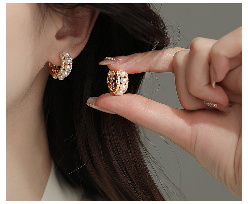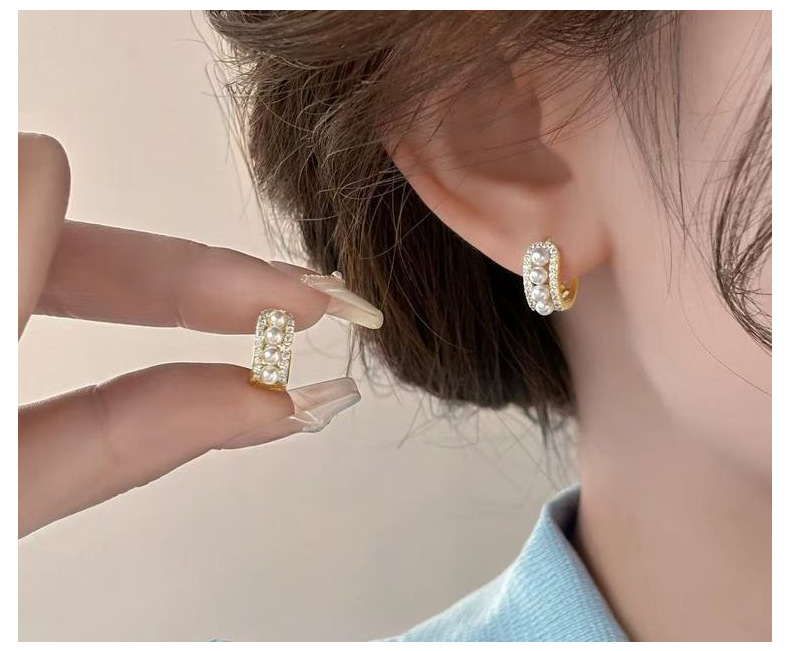 Color: light luxury French pearl earrings (platinum color) gold-plated color retention, light luxury French pearl earrings (gold) gold-plated color retention