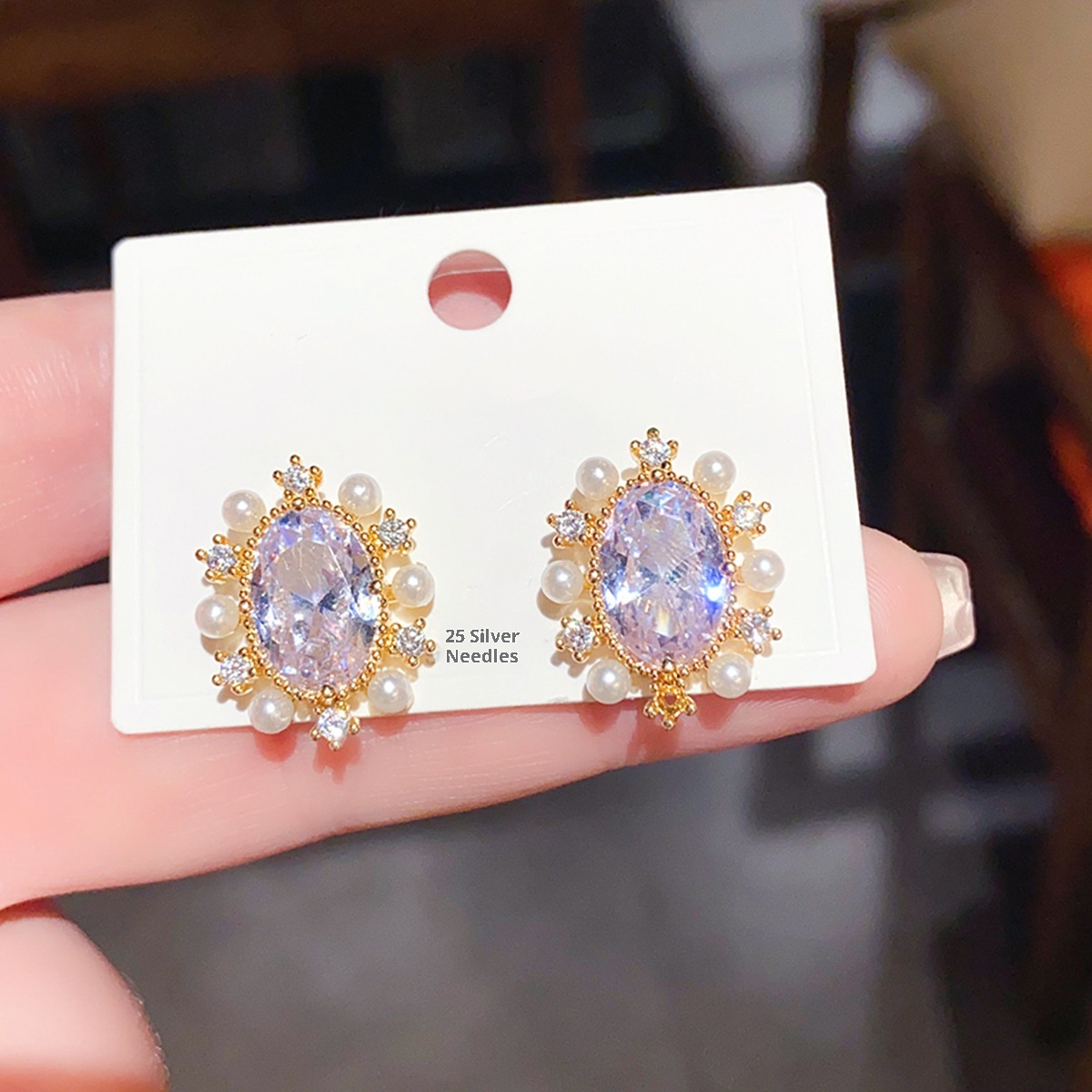 Product information: Treatment Process: inlaid zircon Color: gold, silver, purple, blue Applicable population: Female Material: Copper Shape: heart shape, drop shape, geometry Popular elements: fishtail, round, love/heart shape Style: affordable luxury style