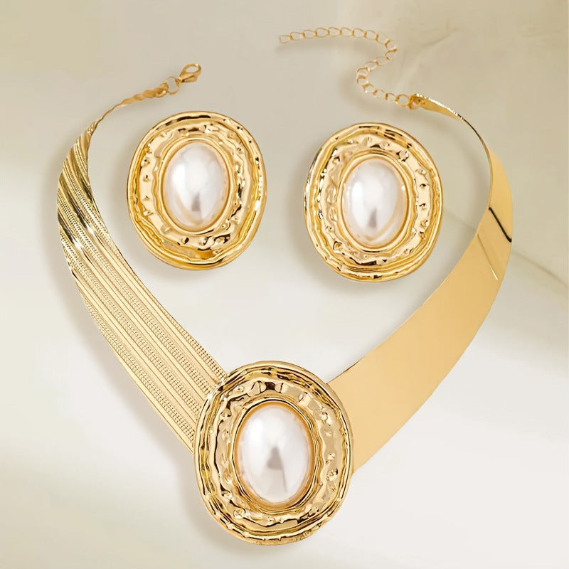 Product information: Color: golden yellow (black), golden yellow (white) Applicable population: Female Material: Iron Popular elements: round Style: sweet and cool Set combination: earrings necklace