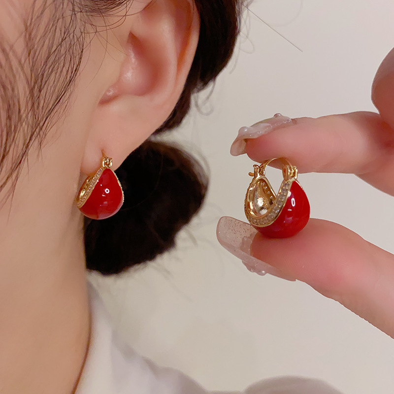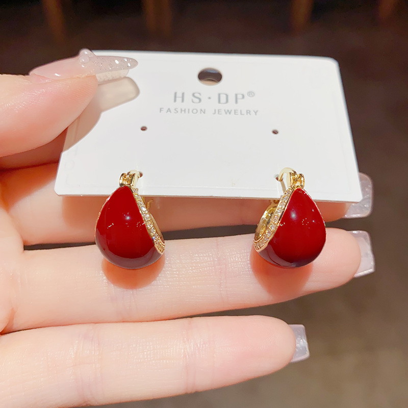 Color: white-micro-inlaid dripping oil ear clip (thick real gold plating), red-micro-inlaid dripping oil ear clip (thick real gold plating)
