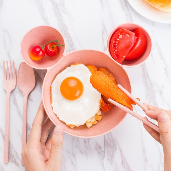 Wheat Straw, Children's Bowl, Cartoon, Wheat Chopsticks, Fork Spoon, Fruit Dish, Mickey's Bowl, Lovely Gift Set
